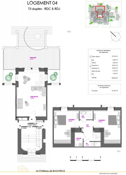| 04 | Appartement | T3 | 83 m² | RDC | ||