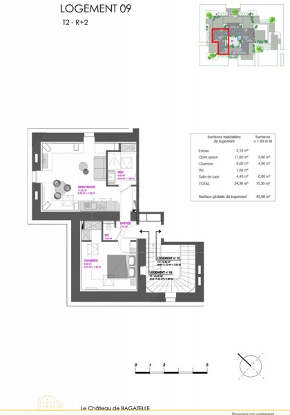 | 09 | Appartement | T2 | 46 m² | 2 | ||