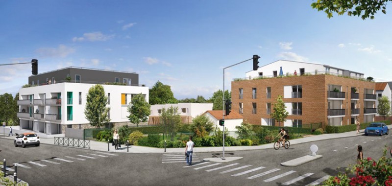 Les 2 bâtiments qui composent le projet proposent deux architectures distinctes : une traditionnelle pour le collectif côté centre historique (parement briques, couverture tuiles, volets bois…) et une contemporaine pour le bâtiment côté gare (toiture terrasse, bardage et gardecorps métalliques…).