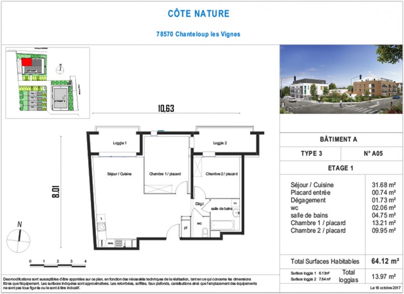 | A05 | Appartement | T3 | 64 m² | R+1 | ||