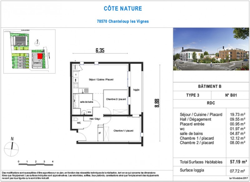| B01 | Appartement | T3 | 57 m² | RDC | ||