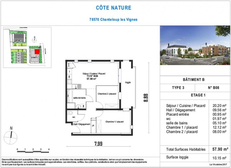 | B10 | Appartement | T3 | 58 m² | R+2 | ||