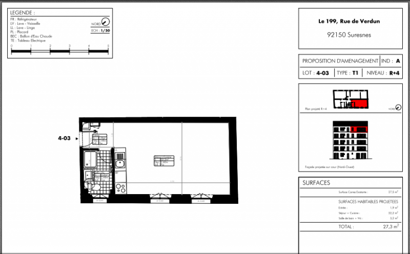 | 4-03 | studio | 27 m² | RDC+4 |
