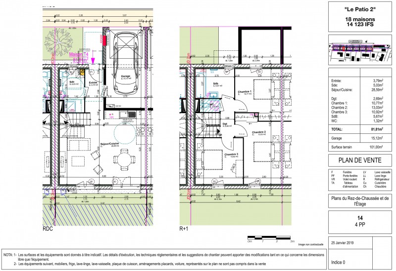 | Lot 14 | Maison | T4 | 81 m² | RDC+1 | ||